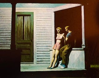 I was in Polson on this sunny morning. After breakfast and the morning paper at the bakery, I took a walk. At one point, I looked down the alley. I saw a rough-around-the-edges couple outside the back door of an upholstery business, leaning against the shaded wall, a smoke break, a moment of pensive silence. My inner camera clicked. The eidetic image had that Edward Hopper feel.